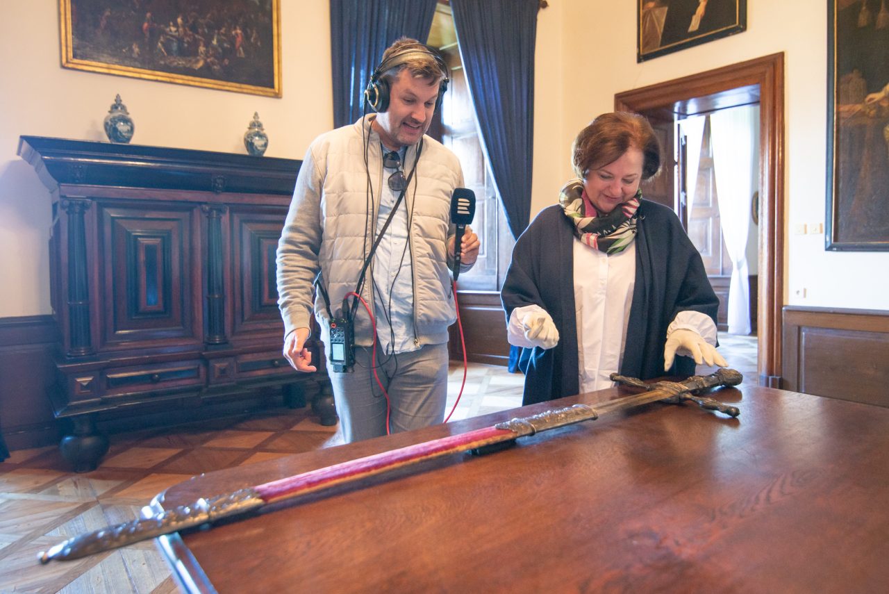 Jedním z předmětů, které se zachovaly, je například ceremoniální meč z roku 1667, dlouhý jeden a půl metru, známý jako "moravský Excalibur". Dostal ho František Karel Kolowrat Libštejnský jako dar od císaře Leopolda I., když byl moravským hejtmanem. Meč se nikdy nenosil u pasu, přinášel se na červené podušce a až po něm do sálu vstupoval jeho majitel. Dnes je vystaven v zámku. „Překvapivě není těžký,“ ukazuje Andrea Kolowrat.