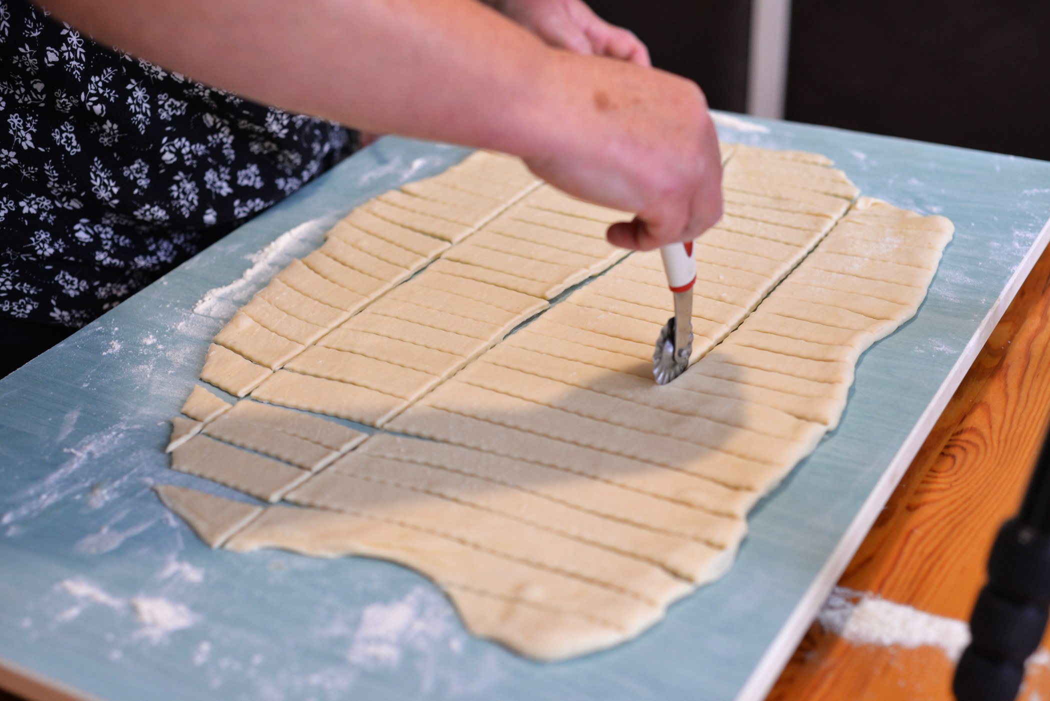 - Rádýlkem vykrojíme obdelníčky, uprostřed se třikrát naříznou, což má symbolizovat Svatou Trojici.