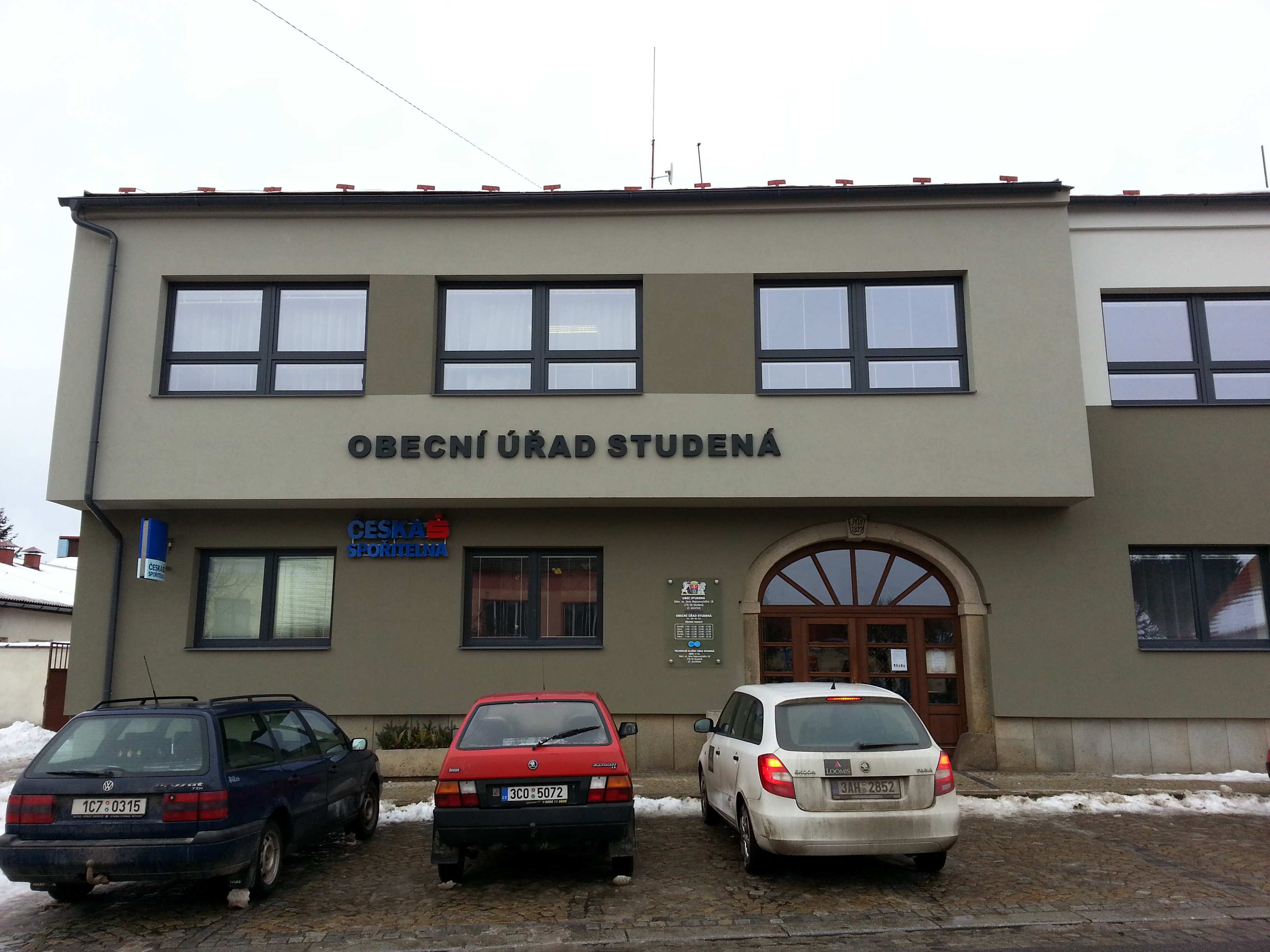 Nově opravený obecní úřad ve Studené se stal cílem ptačích vandalů