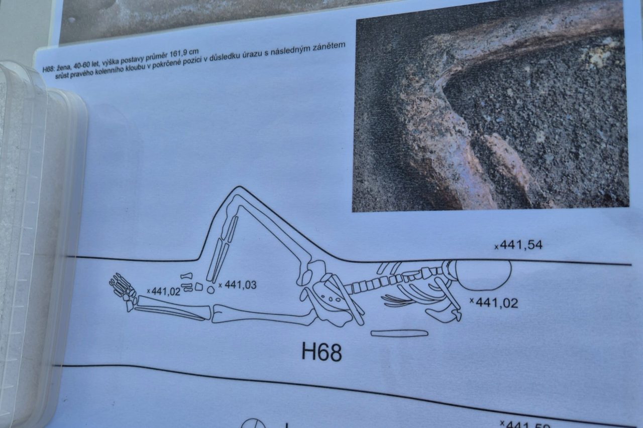 Zajímavý je například nález ženy, která zemřela mezi 40. a 60. rokem věku a za života prodělala vážný úraz pravého kolena. „Kloub srostl v pravém úhlu, potom byla pochována s nohou v pravém úhlu. Ta žena určitě nějakou dobu žila s tím zraněním, evidentně o ni bylo postaráno, sama se o sebe postarat nemohla,“ líčí Jan Kocina.