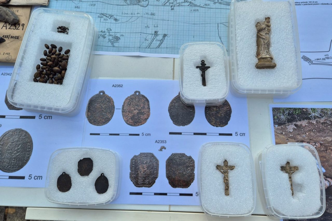 Osobní zbožnosti jsou podle něj při pohřbu obvykle uloženy do oblasti hrudníku nebo břicha zemřelého. „U jednoho jedince se nám dokonce podařilo najít téměř kompletní růženec se všemi korálky a třemi medailonky a tam bylo opravdu vidět, že korálky držel v ruce,“ doplňuje.