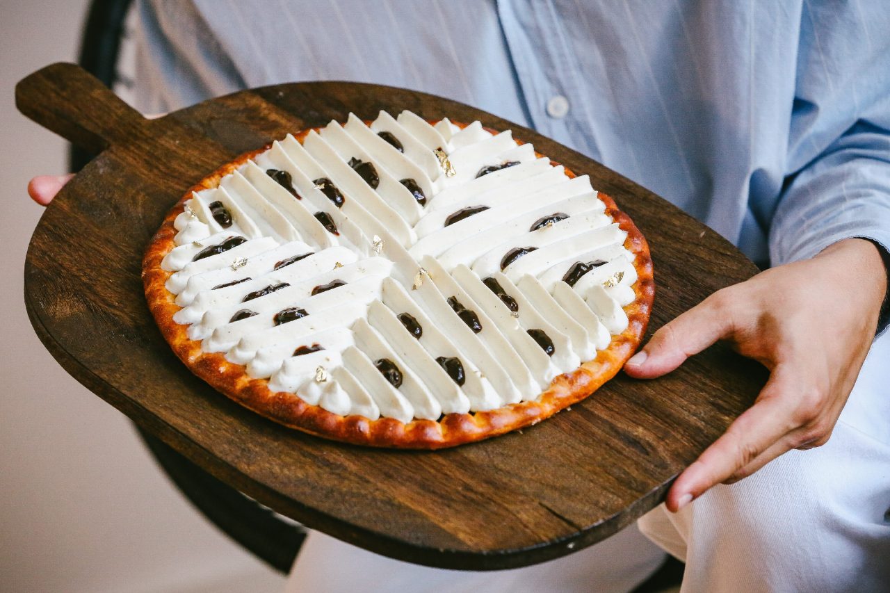 Merhovaný koláč může někomu snadno připomenout dětství. Tenká vrstvička kynutého těsta, povidel a navrchu ganache s chutí pribináčku a bílé čokolády. Tenhle famózní koláč je nekorunovaným králem letošního posvícenského pečení. „Je to moderní twist klasického chodského koláče,“ říká Vojta Vrtiška.
