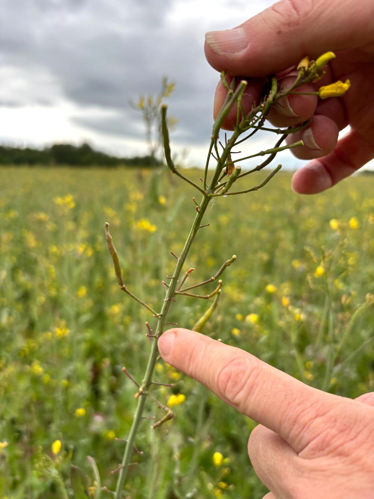 To, že rostliny nejsou v pořádku, je poznat i na květech. „Vrcholové květenství je úplně sežrané blýskáčkem řepkovým. A samozřejmě tomu nepřidaly mrazy, které byly v druhé půlce dubna. U nás bylo téměř mínus sedm stupňů, květy dostaly špatný základ a celá řepka byla oslabena,“ popisuje agronomka.