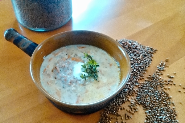 Tento recept představuje pohanku zase v trochu jiném světle, ale především s jinou chutí, než jsme na pohanku zvyklí. Její typická chuť je zjemněna smetanou a výborně podtržena a ochucena kořením. Je to chuťově i výživově vyvážená polévka.