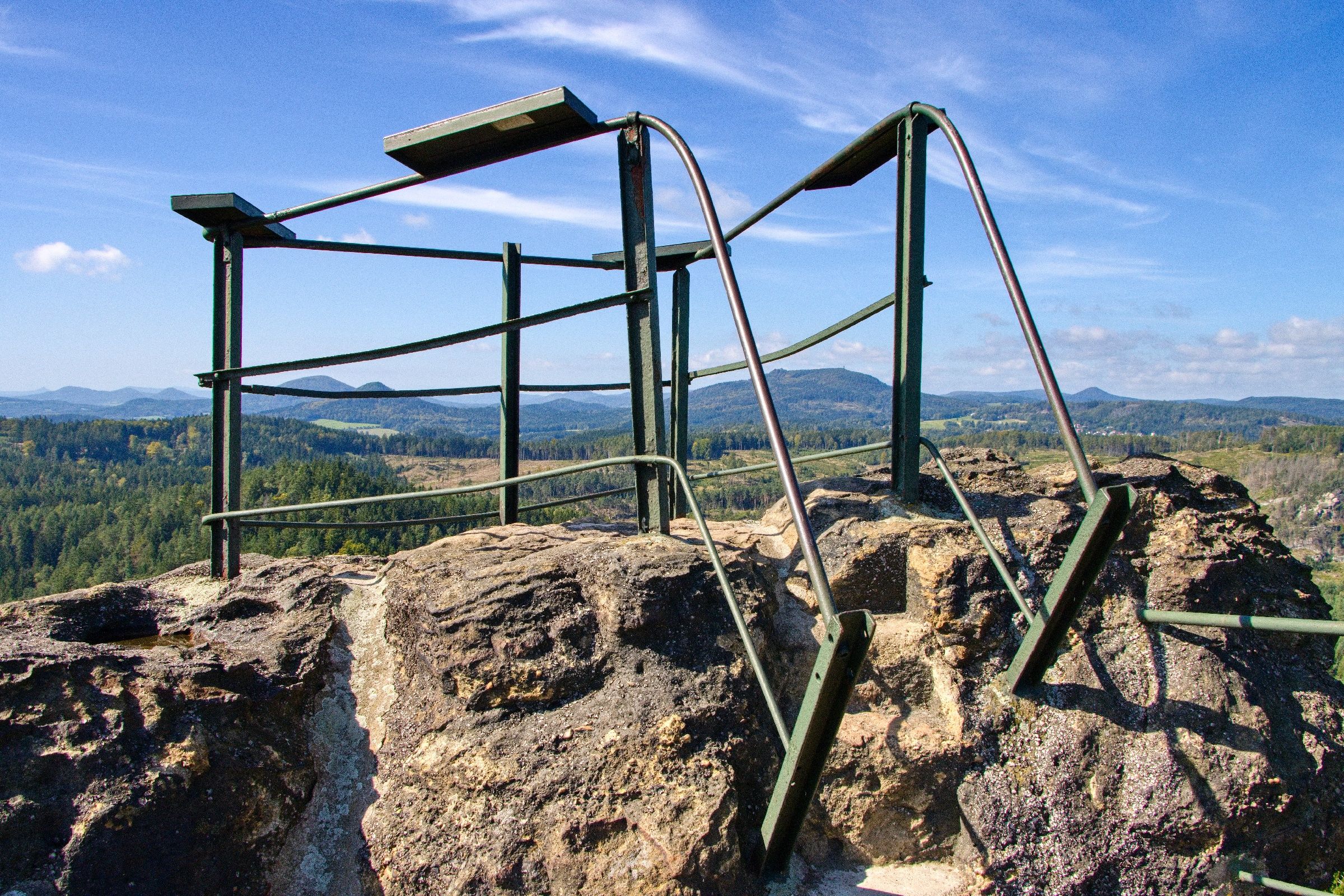 Vrchol Popovy skály v Lužických horách museli turisté podezdít. Výhled z ní za to stojí